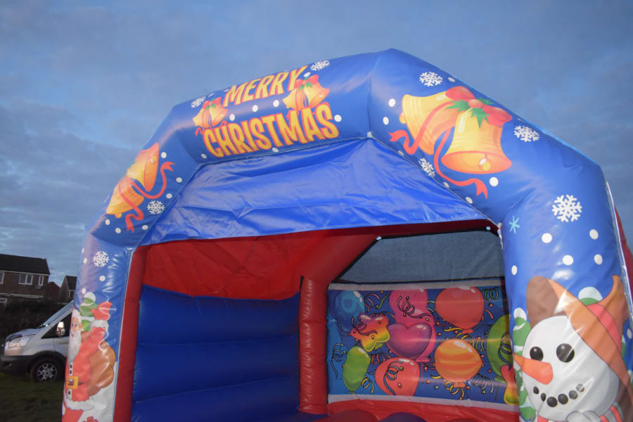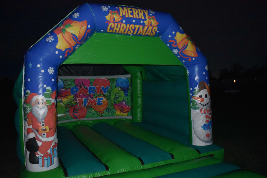 12 X 15 Merry Christmas Theme Bouncy Castle, Christmas time is a wonderful time enjoyed by many, Children will be amazed with our Christmas theme bouncy castle slide, come and join the snowman, father christmas also known as santa, its ideal for Christmas parties, Christmas light switch ons village Christmas fayres and Schools.